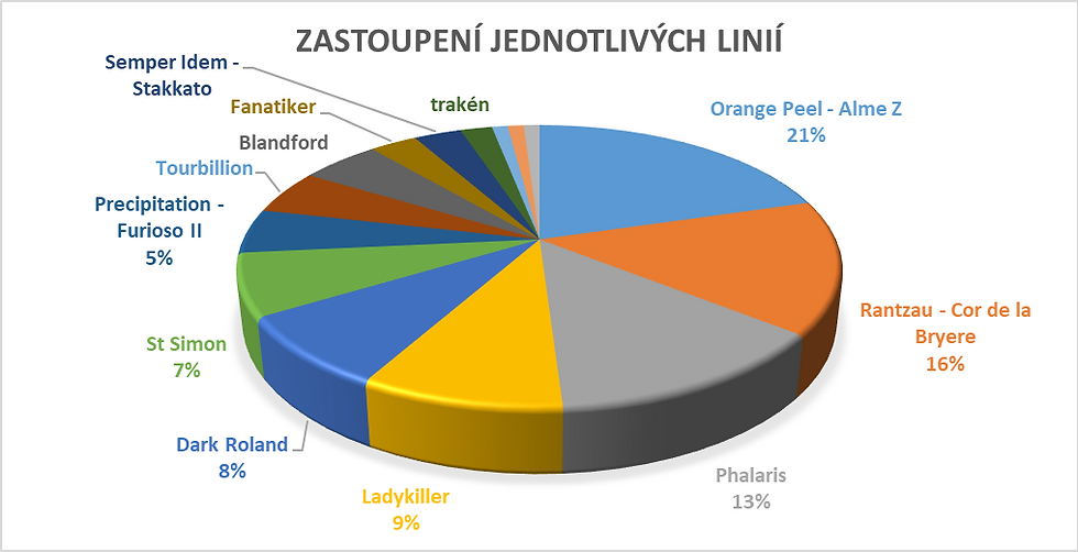V porovnání s rokem 2024 a 2023 je trend zastoupení jednotlivých plemen mezi stovkou nejlepších koní ve všestrannosti velmi obdobný. Plemeno český teplokrevník má s podílem 42% dominantní vliv. Druhým nejpočetnějším plemenem je s 21% český sportovní kůň. Na třetím místě je patrný vliv zvyšujícího se importu polských koní. Zástupci plemen malopolský a polský ušlechtilý kůň představují v grafu 7% a těsně předstihli anglického plnokrevníka.