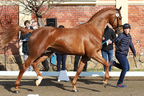 Prvním zástupcem drezurní sekce byl hannoverský hnědák Valentino (Vaterland x Dancier). Hřebec předvedl kadencovaný méně elastický klus, prostorný krok a cval, který by mohl být více do kopce. Ukázal pouze nízké skokové schopnosti s velmi průměrnou technikou skoku. Nebyl vybrán.